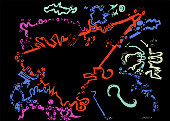Inspired by Kandisky's compositions and dadaist randomness "Zero" is an abstract digital painting that uses procedural creation code that switches the image every few seconds.